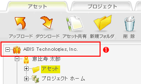 一旦ユーザエリアのアセットフォルダへログインしたら、以下の方法でアカウントルートに移動します。