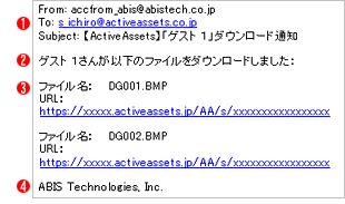 ゲスト宛ダウンロード完了通知メールも同様の情報が送信されます。