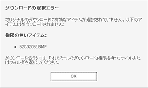 アイテムを選択せずにダウンロードボタンをクリックした場合: