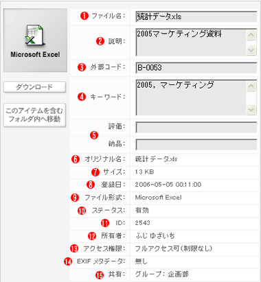 アセットオーナー名。 つまりファイルをアップロード/コピーあるいはフォルダを作成したユーザ。 |
